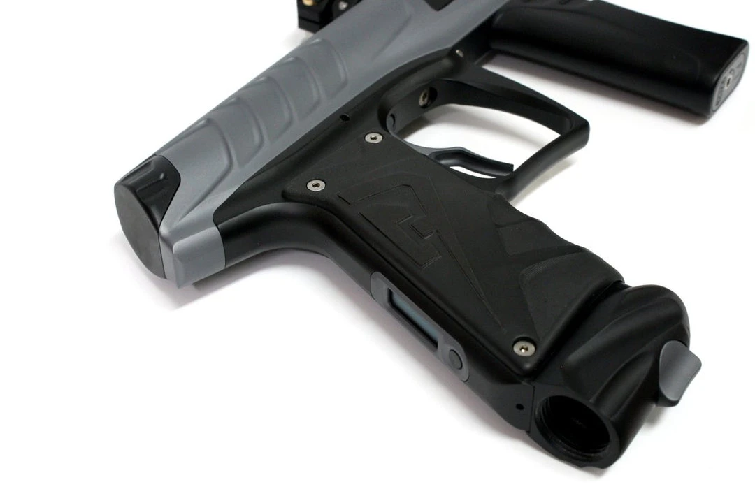 Accurate, quiet, fast and easy to maintain thanks to its Nucleus spool valve engine, the Field One Force offers a unique, aggressive and stylish look and is packed with performance features to help any player hold the lane, make the shot and hang the flag! This high-tech electronic paintball gun features Power Select versatility, the ability to switch between AA battery and rechargeable Lithium Polymer battery options, a LeverLock feed neck to hold tightly onto any loader, a Cam Drive ASA bottle adapter that switches air on and off quickly and easily with no external air lines or hoses and a smooth double trigger. The Field One Force also offers GripShift technology, allowing players to quickly and easily adjust the location of the foregrip of the paintball gun for a truly custom fit and feel in the hands, and is delivered standard with the impressive Field One Acculock barrel kit, a high-tech multi-piece barrel system to deliver pinpoint accuracy and a quiet, consistent shot!