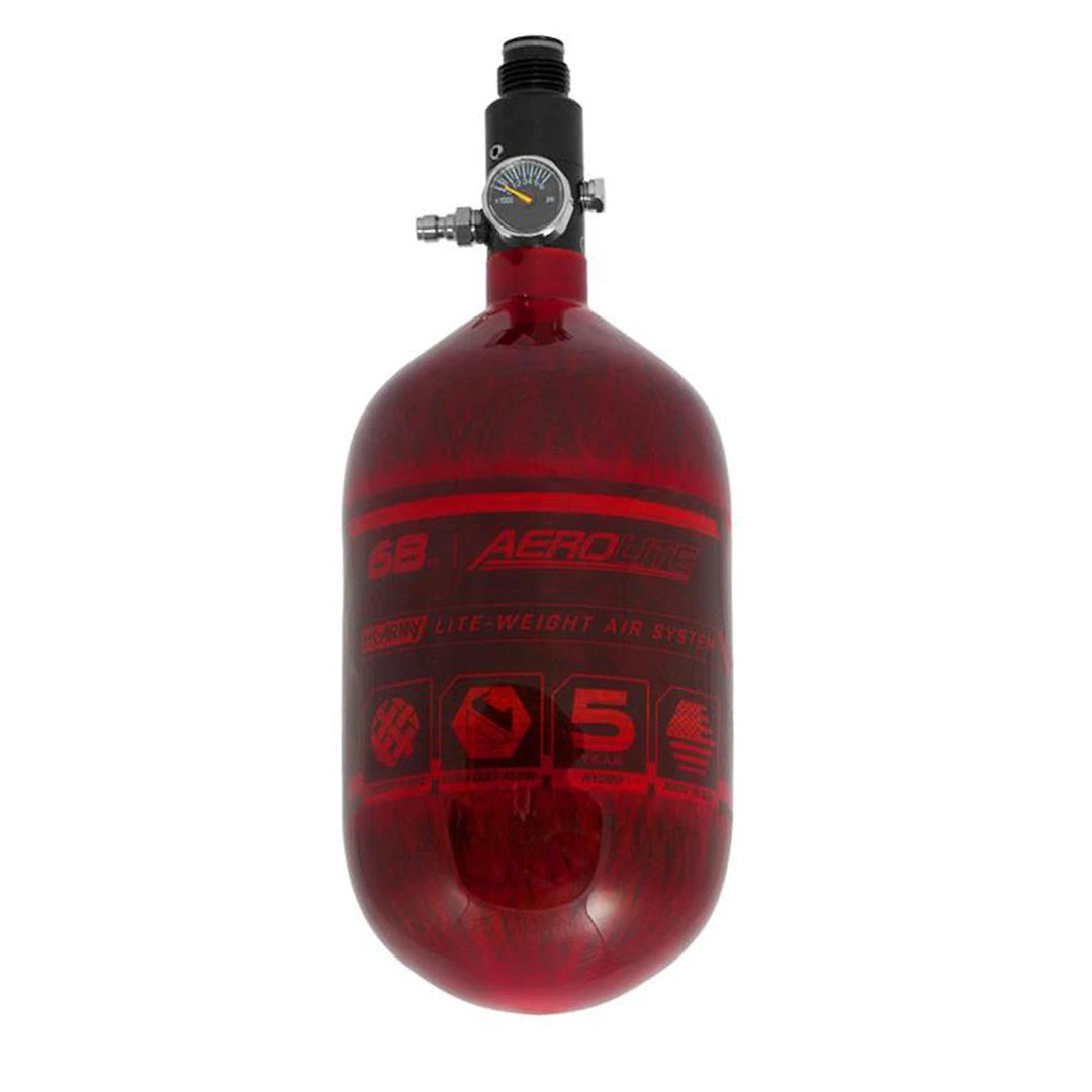 The HK Army Aerolite paintball compressed air system is a lightweight, full-featured paintball air tank with an impressive price! The carbon fiber bottle is light and attractive, with a 5-year hydro test cycle and the aluminum compressed air regulator is simple and reliable, with an 800psi output pressure compatible with almost any modern paintball gun! Paintball players in search of a paintball compressed air bottle that is simple, reliable, lightweight and affordable now have a great option with the HK Army Aerolite paintball air tank!