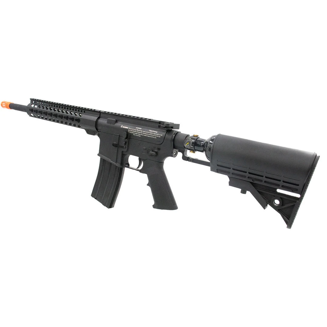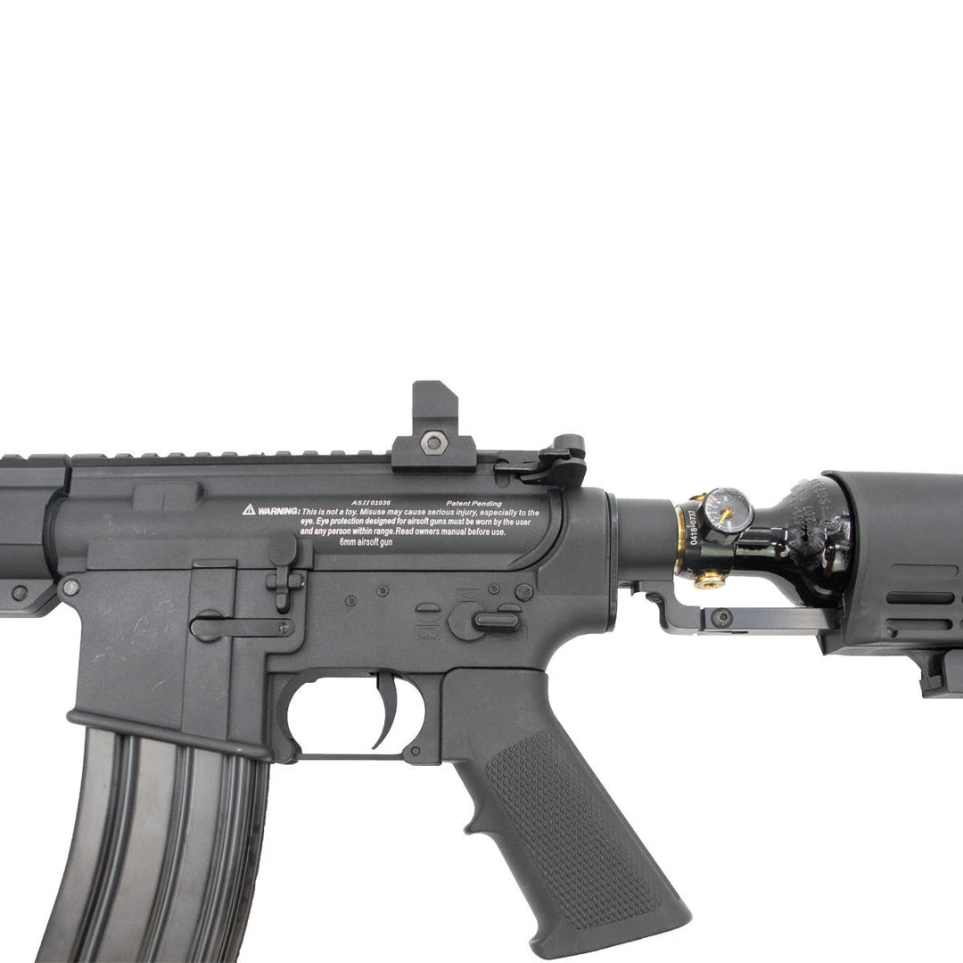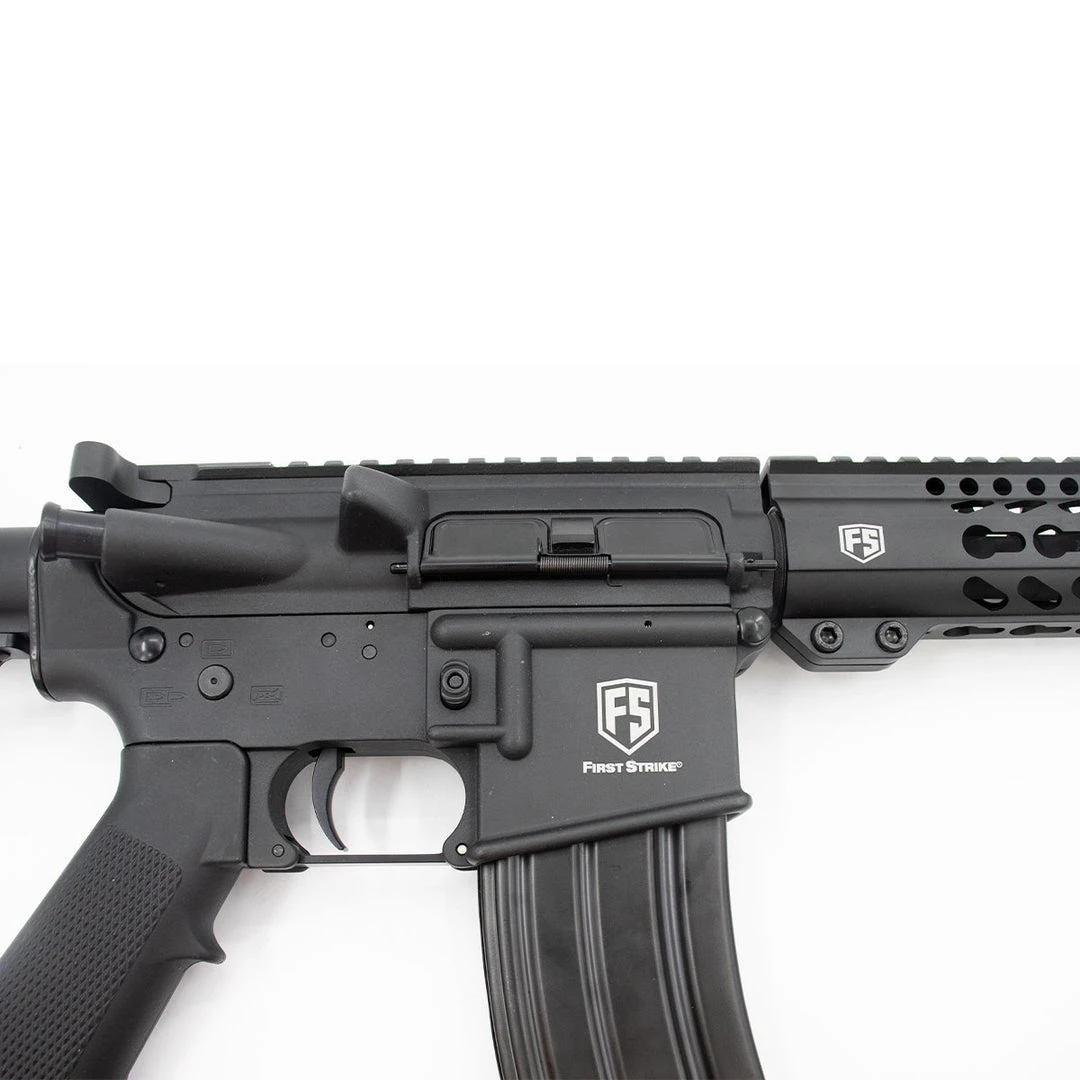 The revolutionary First Strike Tiberius T15A1 PDW airsoft rifle is the new compact HPA airsoft rifle. Just hook up your favorite low pressure air system, run a remote air line from the adjustable PDW stock, and you’re ready to shoot. The First Strike airsoft rifle comes with an efficient mechanical HPA system that has a 2,000+ shot count per air tank (used with 48 cubic inch 3000psi air tank sold separately). The body is made out of a high grade cast aluminum and is manufactured to the tightest tolerances. The T15 airsoft rifle also features a robust valve system that is isolated from the striker/bolt assembly. The operator can separate the upper receiver from the lower receiver safely without the need to de-gas the system, i.e. remove the tank/air source. Also, no batteries are required which means the First Strike T15 airsoft rifle is suitable for play in all types of weather. We recommend our Valken SMAG 140rd Mid-Cap airsoft magazines for use with the T15A1 PDW rifle.