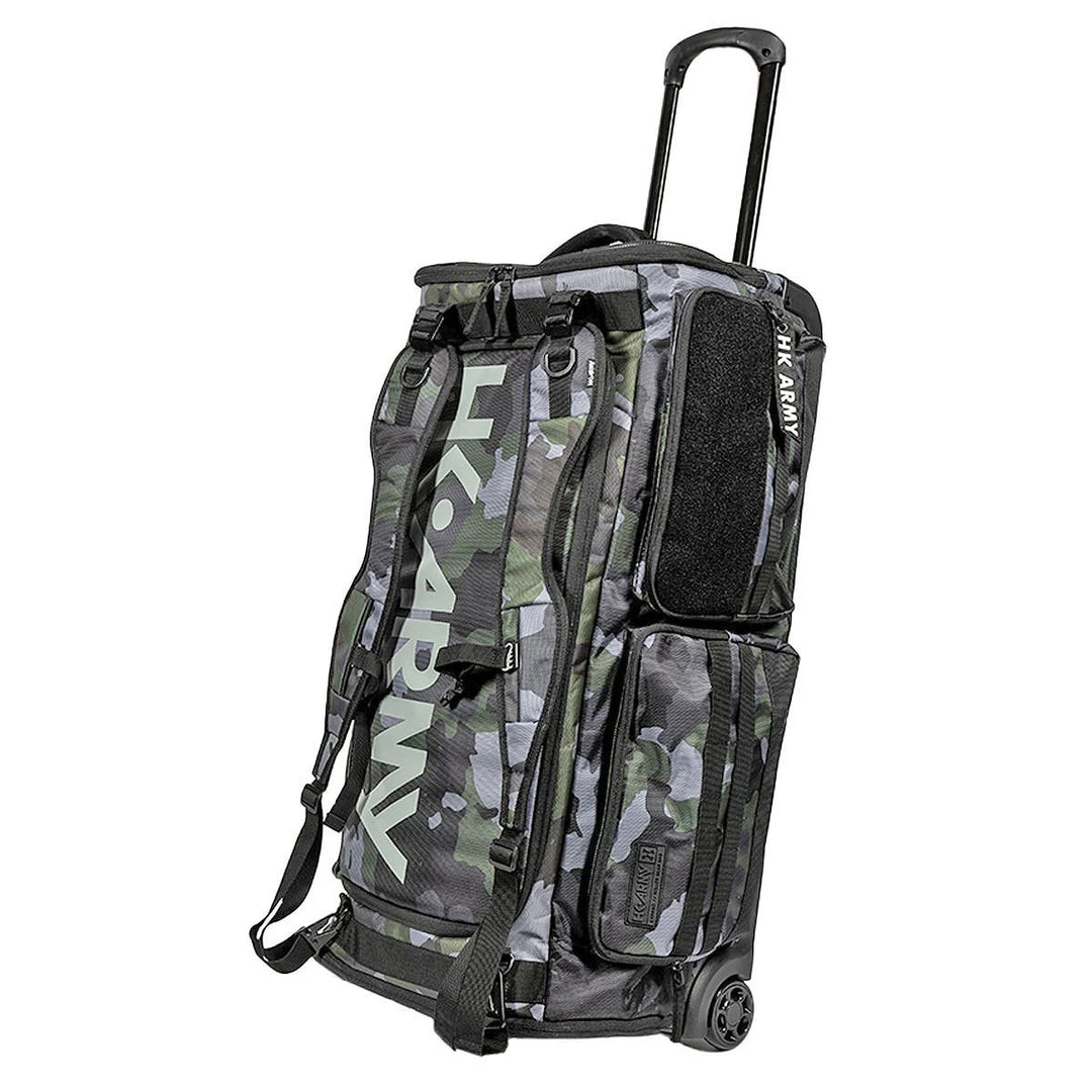 Transporting gear to and from the paintball field, whether that field is down the street or halfway around the world, isn’t an easy task because there’s always so much to carry! Now, with the HK Army Expand rolling gear bag, you can transport everything you need (and a bunch of stuff you don’t) to the paintball field down the road or the paintball tournament or scenario event across the country in padded, protected, convenient style! Complete with both a telescopic handle to pull the rolling bag on smooth rolling wheels and removable shoulder straps when it’s time to get into 4×4 mode and carry the gear bag through a muddy staging area, across the gravel parking lot or up the apartment building stairs instead of clunking it up each stair, the HK Army rolling gear bag offers plenty of storage room, a padded and lined goggle compartment, water resistant materials, padded paintball gun storage and even panels for moral patches to show personalize the bag, or make it easier to identify yours on the airport luggage carousel!