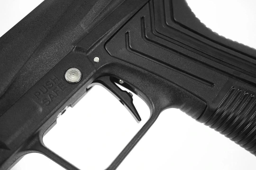 The Etha3M offers players a sleek, fresh approach to ergonomics with a host of notable performance upgrades. Its quick-release bolt assembly makes a huge difference to accessibility and maintenance which is typically found on much more expensive marker platforms. The aluminium low-rise feedneck reduces the overall profile of the marker. But it’s the new aluminium trigger and mighty FL 3-way that makes a serious step forwards in terms of firepower. The lighter, more responsive and faster trigger cycling potential is jaw-dropping.