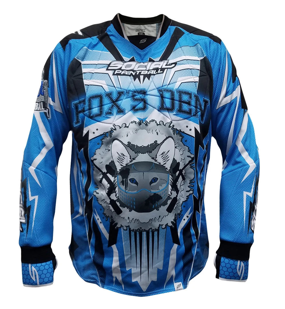 You can now order your own official Fox’s Den paintball team jerseys and other custom apparel. The Flex jersey is a full padded jersey with several features. The jersey features our industry-first full-back mesh, mesh along the sides and under the arms. Padding is placed on the collar, half gloves, forearms, chest, and shoulders. The forearms are also reinforced with CORDURA fabric to make it more resistant to abrasion.