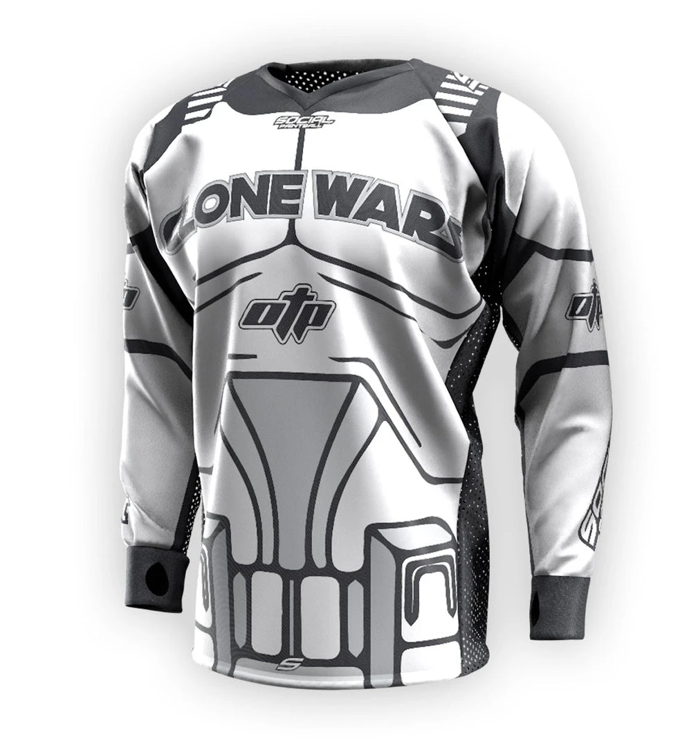 We’ve reissued this design due to popular demand! The Official Limited Edition 2017 Social Paintball and On Target Paintball Clone Wars Scenario event custom paintball jersey is now yours to order. These jerseys are being made on a limited run for the event. This will be made on our SMPL unpadded paintball jersey cut. The jersey features a full-back mesh, mesh along the sides and under the arms, and cuffs with thumb holes.