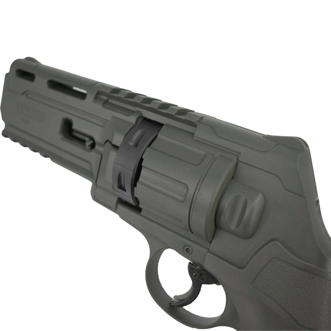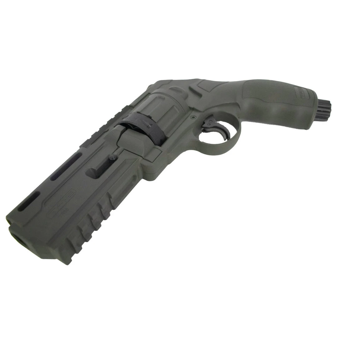 We know what you’re thinking – did he fire six shots or only five? Well with the Umarex T4E paintball revolver, you can ask any opponent if they’re feeling lucky! Firing .50 caliber paintballs from a replaceable 6 shot cylinder, the Umarex paintball revolver is powered by a 12 gram CO2 cartridge inserted in the grip and features accessory rails for the mounting of lights, lasers or other accessories. Lightweight yet rugged and ready for force on force Training 4 Engagement or mag-fed and tactical paintball, the Umarex .50 caliber paintball revolver makes an amazing sidearm for paintball gunslingers or any paintball “Dirty Harry!”