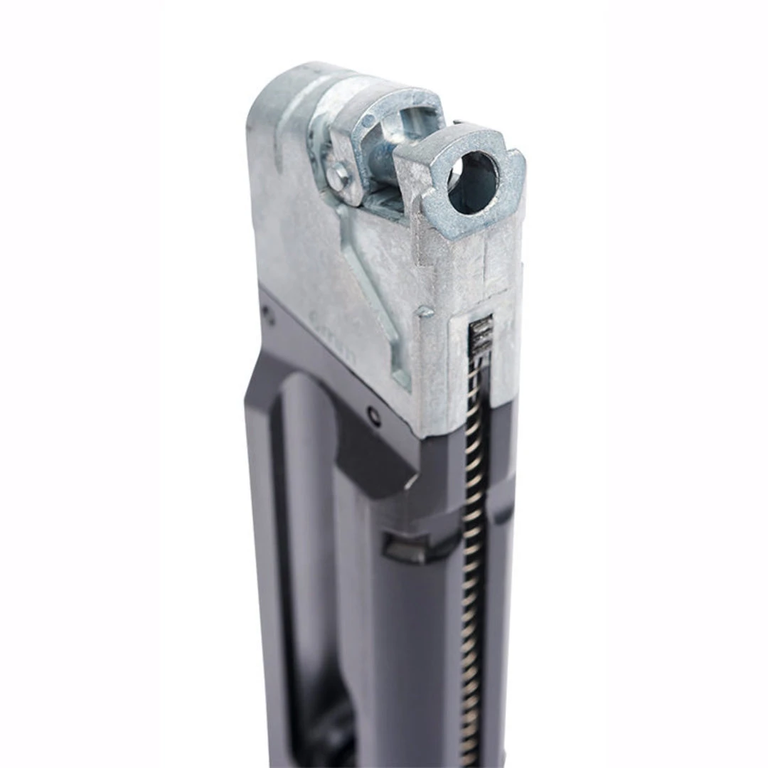 The Umarex 14rd GLOCK 19X Co2 spare airsoft magazine is made from heavyweight aluminum, giving a hefty feel to the G19X Co2 airsoft pistol. This green gas Umarex magazine has a high-efficiency internal gas system providing excellent FPS output, and reinforced valves and seals for optimal gas retention. We recommend using Valken Green Gas with this gas pistol magazine.