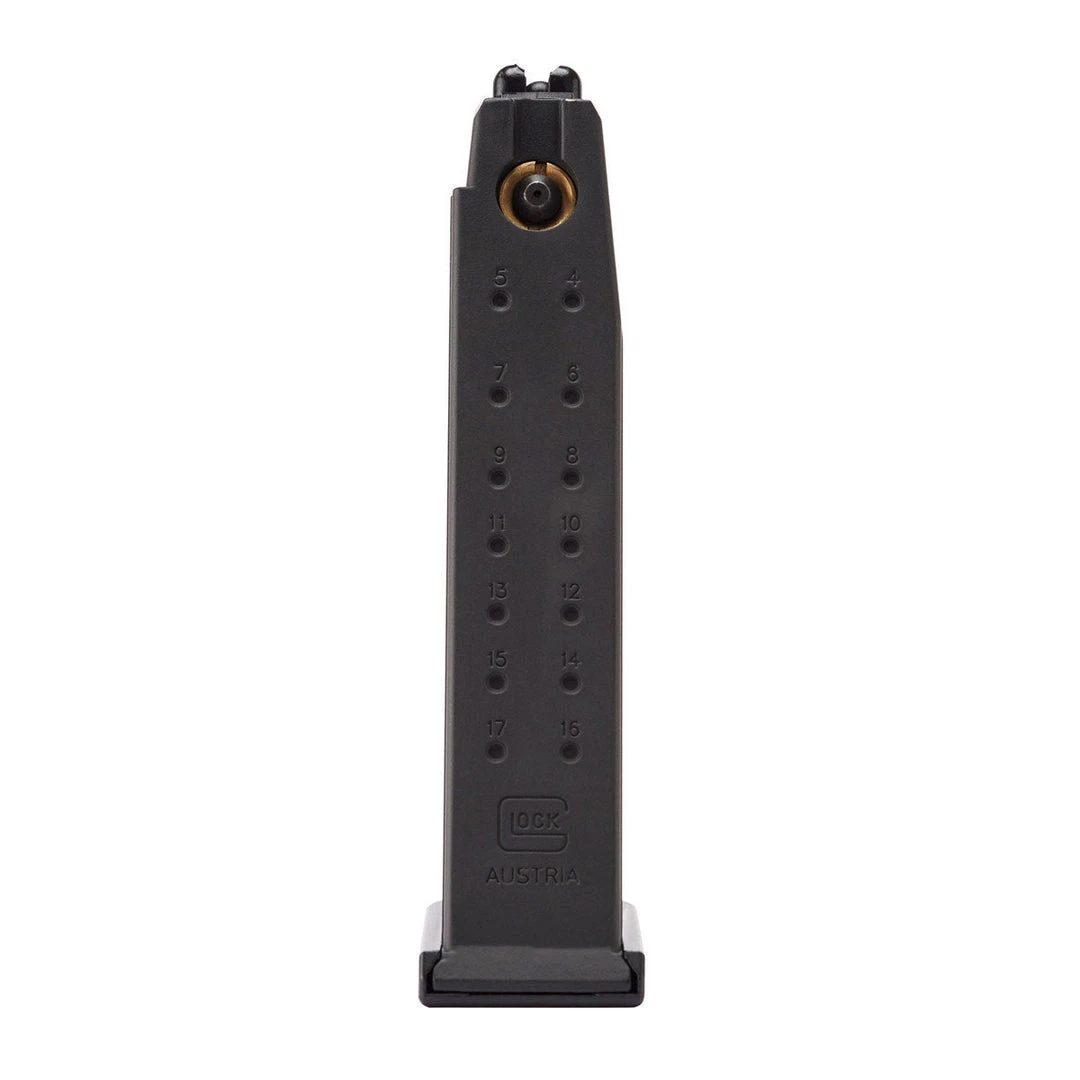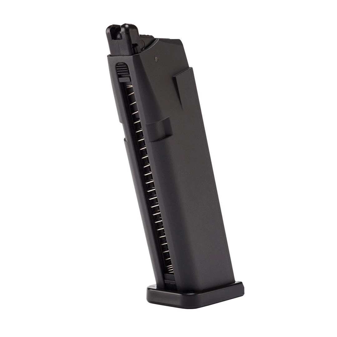 The Umarex 17rd GLOCK 17 Gen4 Co2 spare airsoft magazine by KWC is made from heavyweight aluminum, giving a hefty feel to the G17 GEN4 airsoft pistol. This Co2 Umarex magazine has a high-efficiency internal gas system providing excellent FPS output, and reinforced valves and seals for optimal gas retention. We recommend using Valken 12g Co2 Cartridges with this gas pistol magazine.