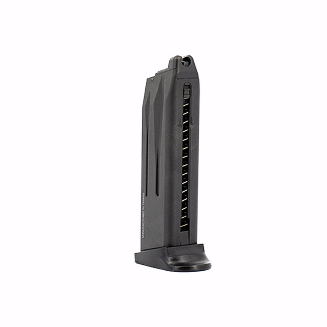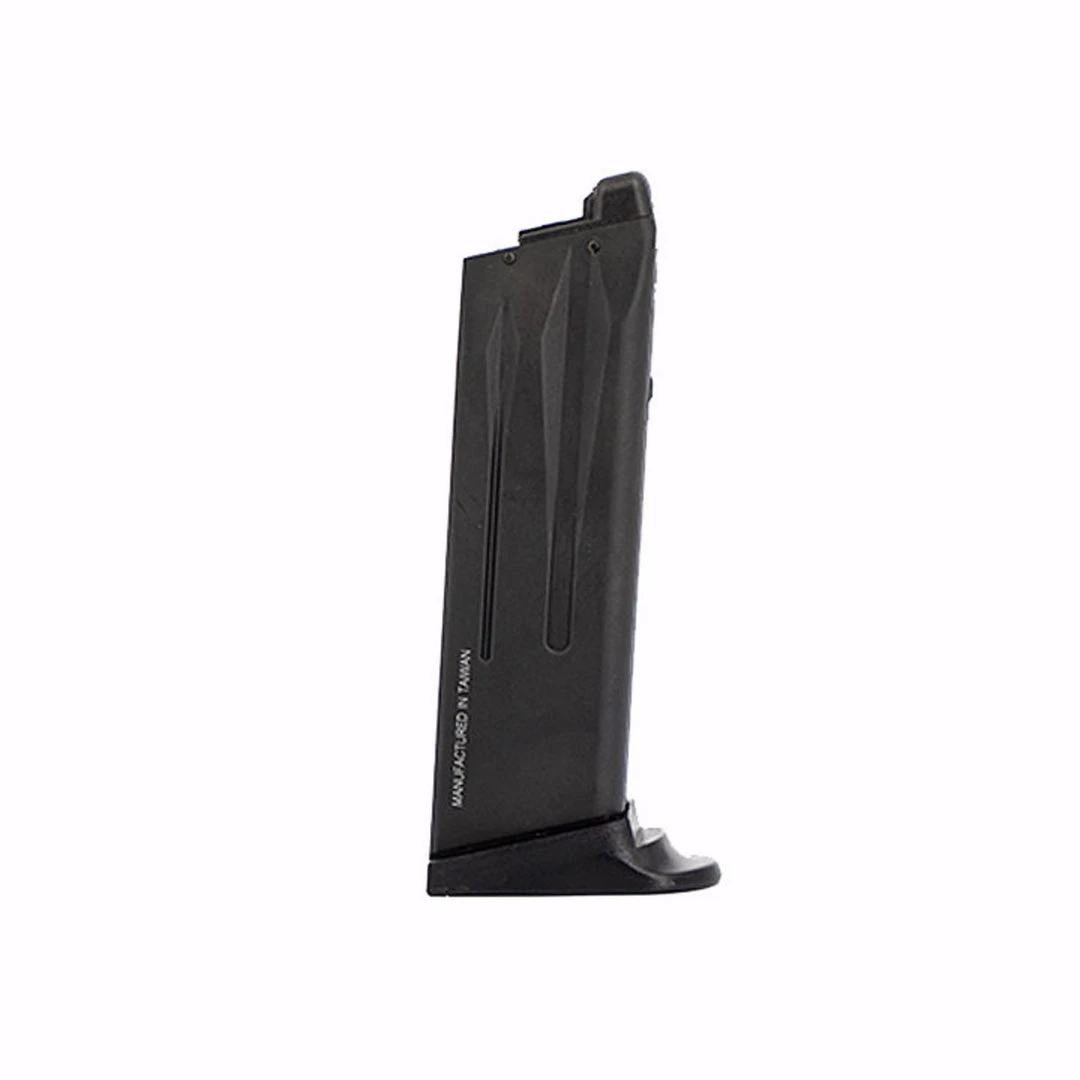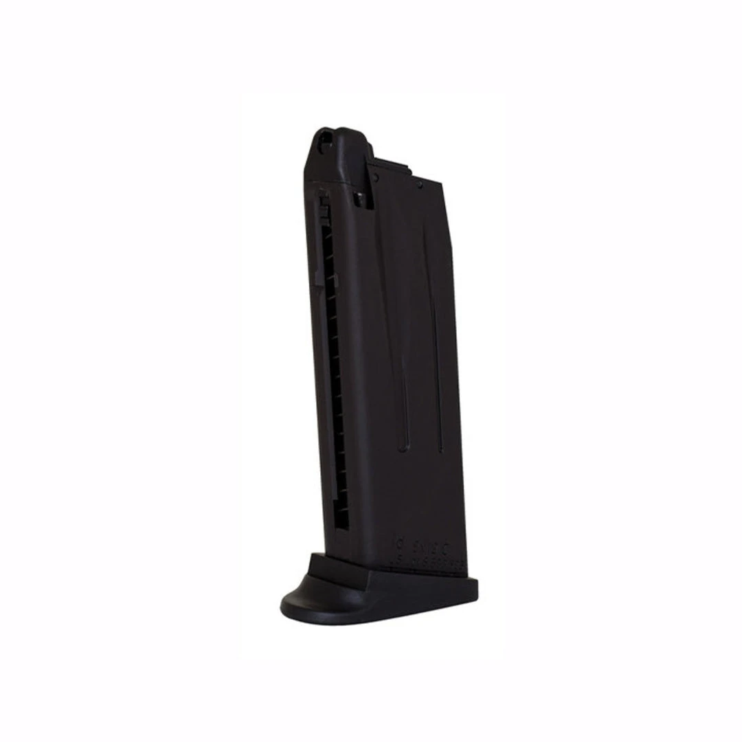 The Umarex 22rd H&K USP Compact Green Gas spare airsoft magazine by KWA is made from heavyweight aluminum, giving a hefty feel to the USP airsoft pistol. This green gas Umarex magazine has a high-efficiency internal gas system providing excellent FPS output, and reinforced valves and seals for optimal gas retention. We recommend using Valken Green Gas with this gas pistol magazine.