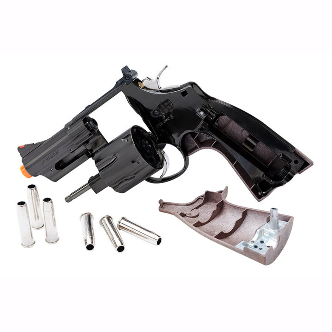 Do you feel lucky? The Umarex 8-3/8” Smith & Wesson .44 Magnum “Dirty Harry” Co2 revolver is a Co2 airsoft revolver that has everything you could want in an airsoft revolver. This Umarex M29 airsoft revolver is Co2 powered and functions similarly to a real revolver. This S&W revolver looks and feels just like the one used in the iconic Dirty Harry movies, and comes with six silver, polished cartridges. The cylinder holds six cartridges, and each cartridge holds one 6mm airsoft BB. The Co2 revolver can be fired in double or single action, meaning that the hammer can either be cocked back before each shot or the trigger can be used to cock the hammer and fire. We recommend our Valken 12g Co2 Cartridges for use with this Umarex airsoft pistol.