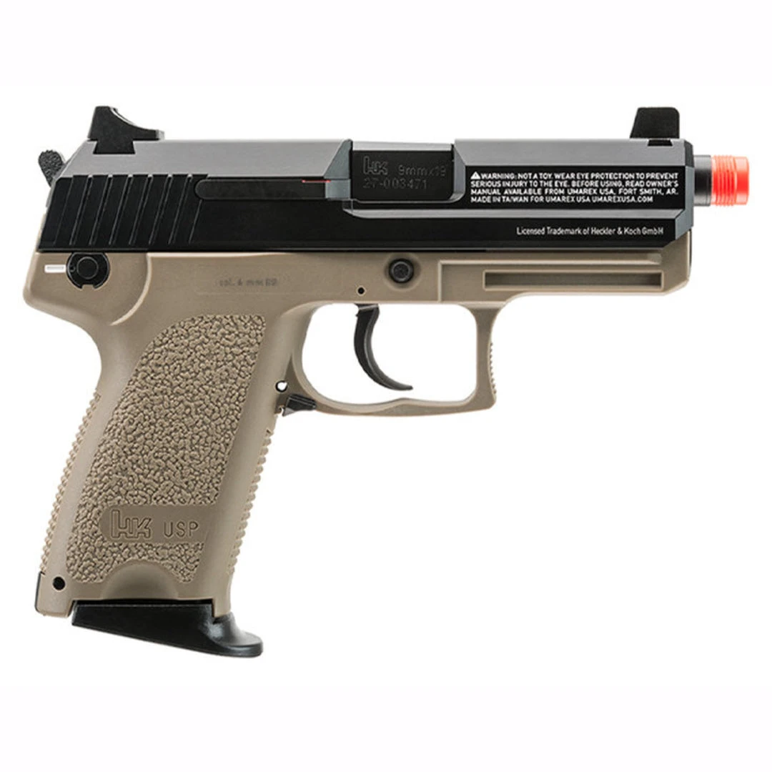 The Umarex H&K USP Compact Tactical airsoft pistol by KWA is a GBB airsoft pistol with double action. The USP Compact has a moving hammer that adds realism as well as fixed tactical sights. The USP GBB pistol also comes with a threaded outer barrel and magazine releases on each side of the trigger guard. This is an Officially licensed replica with Heckler & Koch GmbH Trademarks! We recommend our Valken Green Gas for use with this Umarex airsoft pistol.