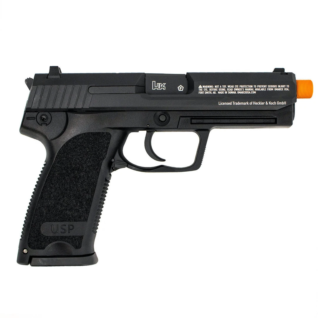 lThe Umarex H&K USP Tactical Full Size Co2 Blowback airsoft pistol by KWC is a Co2 airsoft pistol with double action. The full size USP has a moving hammer that adds realism as well as fixed tactical sights. The USP Tactical Co2 blowback pistol also comes with a threaded outer barrel and magazine releases on each side of the trigger guard. This is an Officially licensed replica with Heckler & Koch GmbH Trademarks! We recommend our Valken 12g Co2 cartridges for use with this Umarex airsoft pistol.