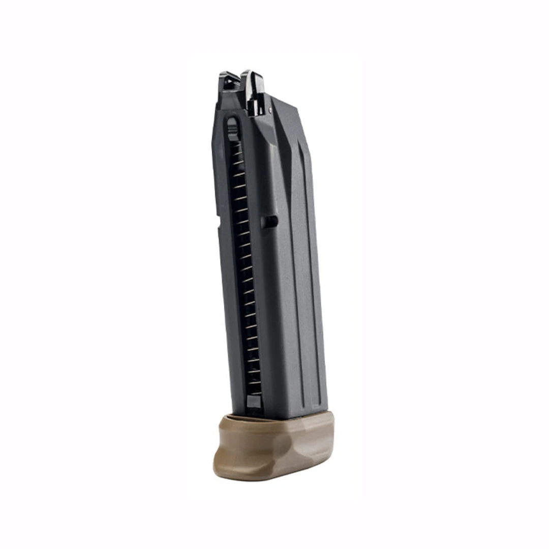 The Umarex Walther PPQ Tactical GBB airsoft pistol by VFC is a solid and dependable Umarex airsoft pistol that is great for smaller hands. The PPQ gas airsoft pistol is a double stack, medium capacity sidearm that has the ability to interchange between standard and extended magazines. It has some great external features, including a magazine grip plate extension and full length lower rail to attach a multitude of accessories. This is an Officially licensed replica with Walther Trademarks! We also recommend the Umarex PPQ 22rd Spare Magazine and the Umarex PPQ 45rd Extended Spare Magazine.