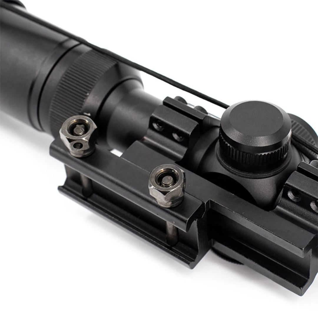 The Valken 1-4×20 Mil-Dot rifle scope is the ideal compact scope for an airsoft rifle. It has a super-wide field of view and extra long eye
