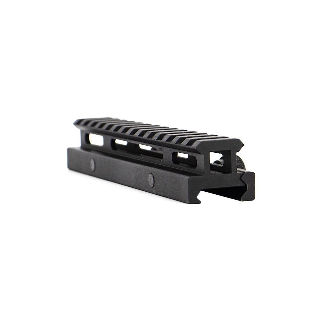The Valken 3/4” Riser Mount with 14 ring slots is a rifle accessory that mounts to a flat top picatinny rail. This tactical riser mount is used to raise an optic’s line of sight by 3/4”, and locks firmly into place with two thumb screws. It installs in seconds, and is very helpful when using with full-size rifle scopes. We recommend our Valken 1-4×20 Mil-dot Scope for use with this riser when you need those longer ranged shots.