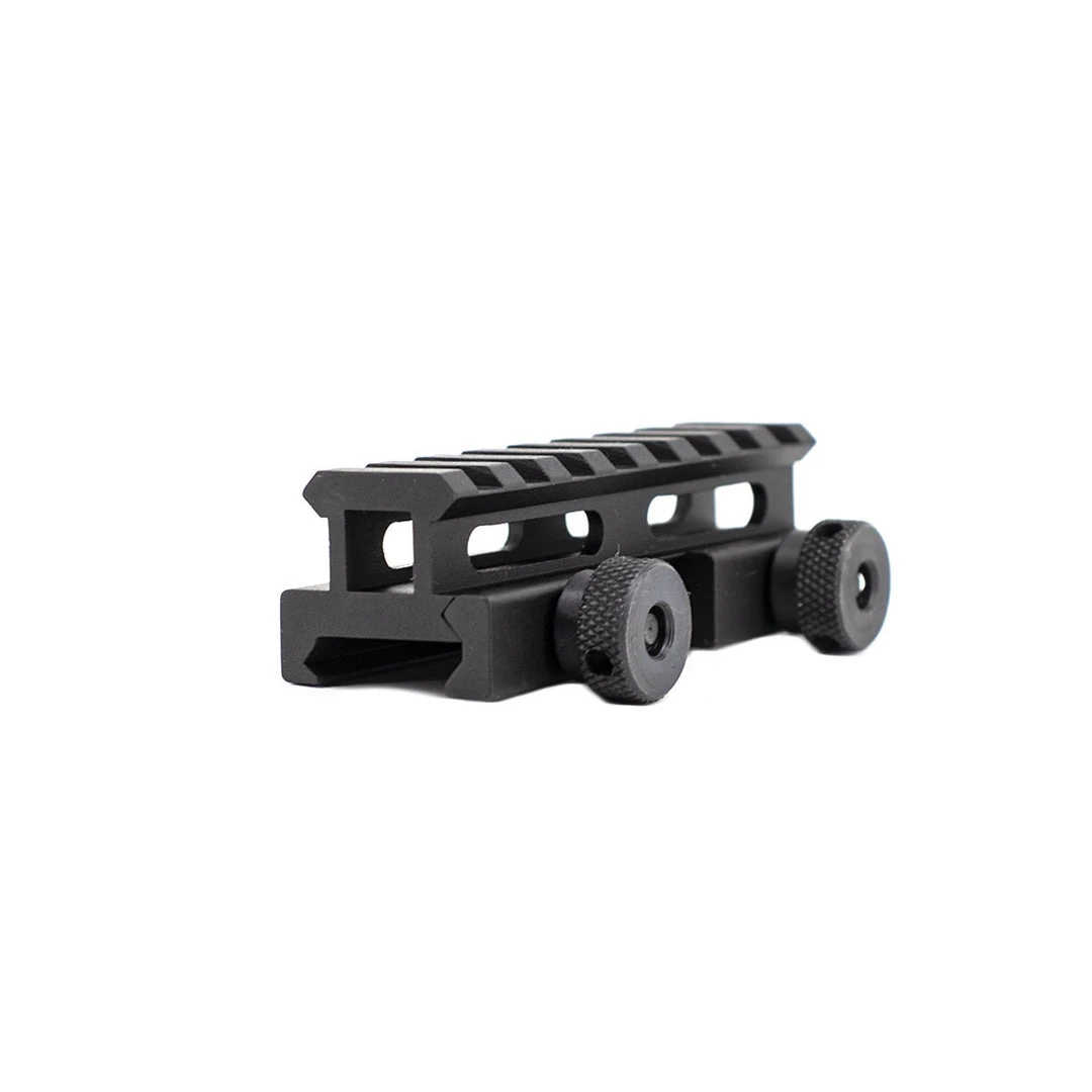 The Valken 3/4” Riser Mount with 8 ring slots is a rifle accessory that mounts to a flat top picatinny rail. This tactical riser mount is used to raise an optic’s line of sight by 3/4”, and locks firmly into place with two thumb screws. It installs in seconds, and is very helpful when using with red dot sights. We recommend our Valken 1×35 Multi-Reticle red dot sight for use with this riser when you need those longer ranged shots.