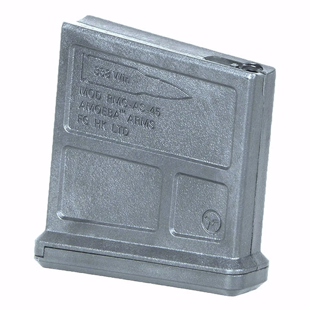 The Ares Amoeba 60rd Striker Sniper Rifle airsoft magazine is an airsoft mid-cap magazine for use with the Amoeba Striker AS-01 and AS-02 airsoft rifles. This airsoft sniper magazine uses a direct feed mechanism that feeds smoother than hi-cap airsoft magazines because of their stronger internal spring. We recommend using our Valken Accelerate ProMatch 0.40g white sniper BBs.