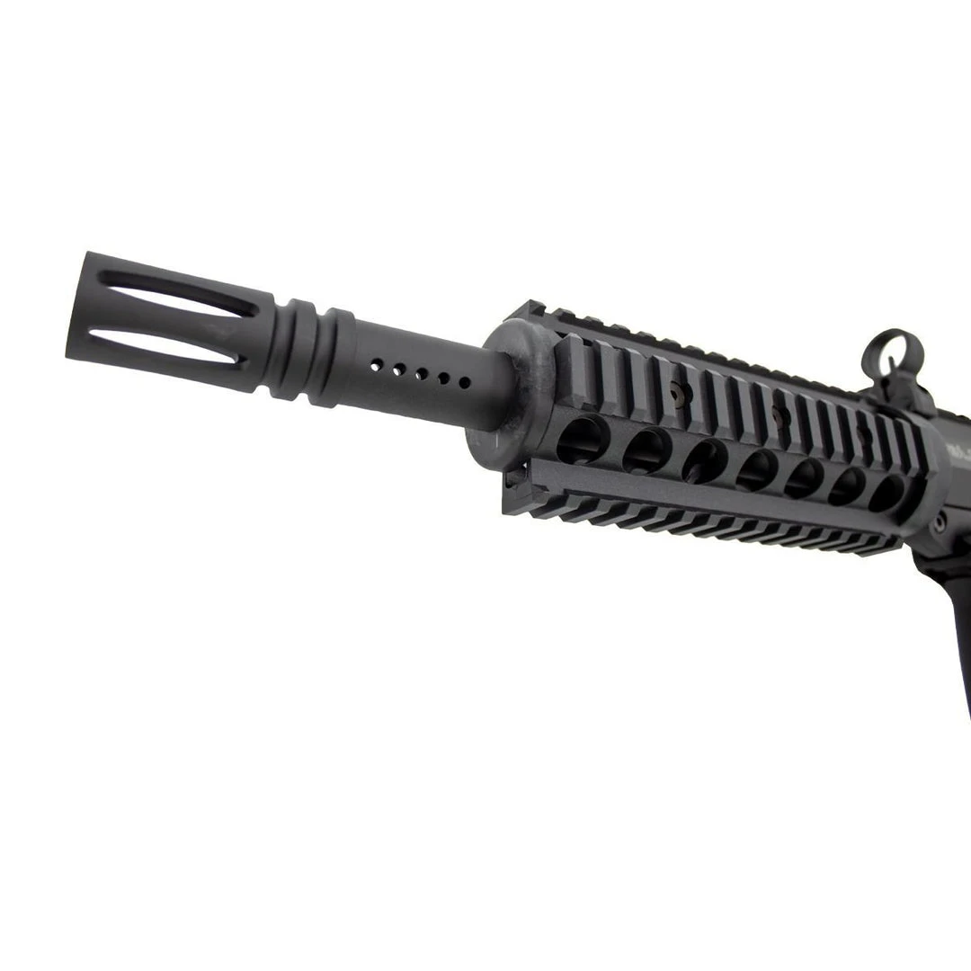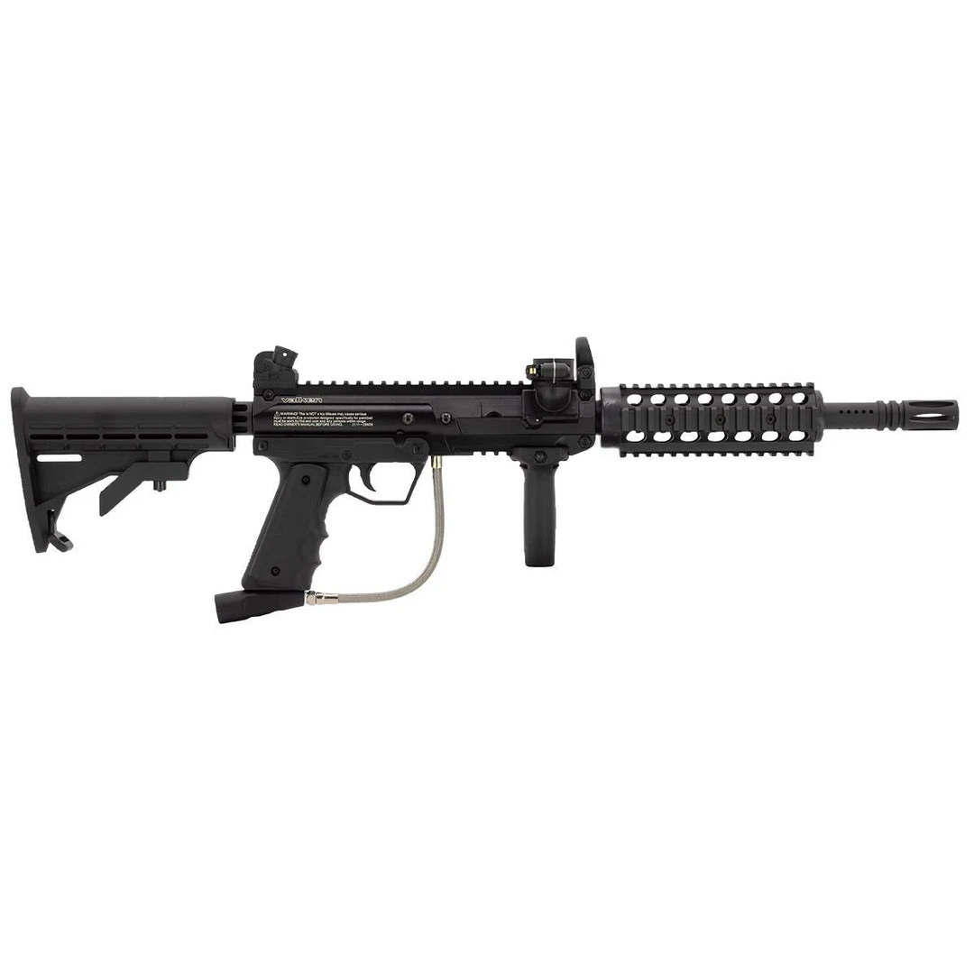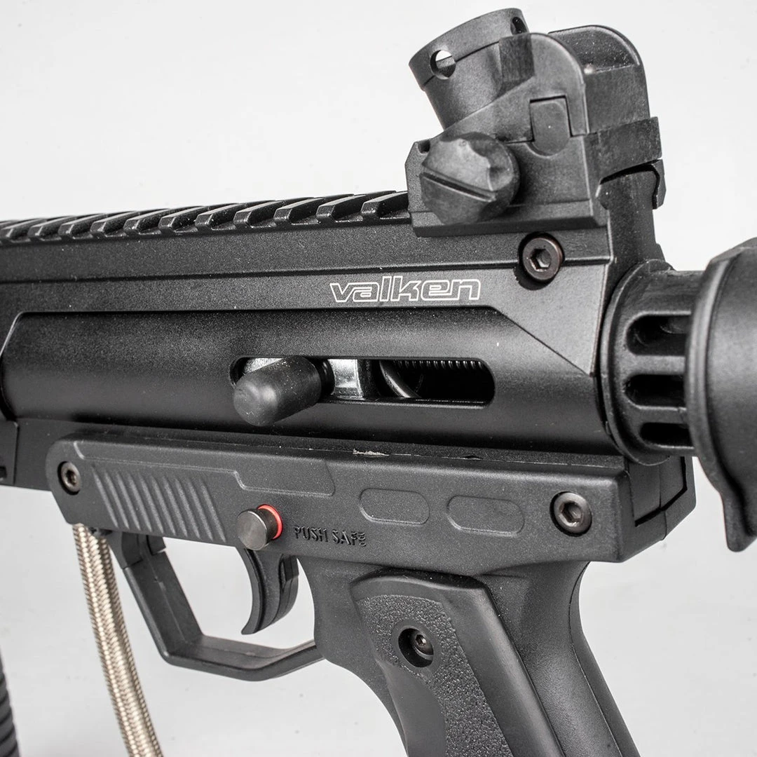 Whether a hard-core scenario operator or a recreational paintball player who needs their paintball equipment to look good, handle well and work every single time the trigger is pulled, the Valken Blackhawk Whiskey Rig paintball gun is the perfect choice! A lightweight yet durable mechanical paintball gun built around a rugged and time-tested inline blowback operating system that can handle even the worst weather conditions and keep right on firing, the Valken Blackhawk Whiskey Rig has been upgraded with everything a serious player needs to hit the field and win, including a tactical-style forward handguard with a vertical foregrip, an adjustable AR-style shoulder stock, a bottom line air adapter with a durable stainless steel hose, a clamping adjustable hopper adapter, a sight rail for the use of scopes or sights and a twelve inch ported aluminum barrel for consistent accuracy. Built tough and ready for action, the Valken Blackhawk Whiskey Rig delivers the form and function any serious players needs to accomplish any mission!