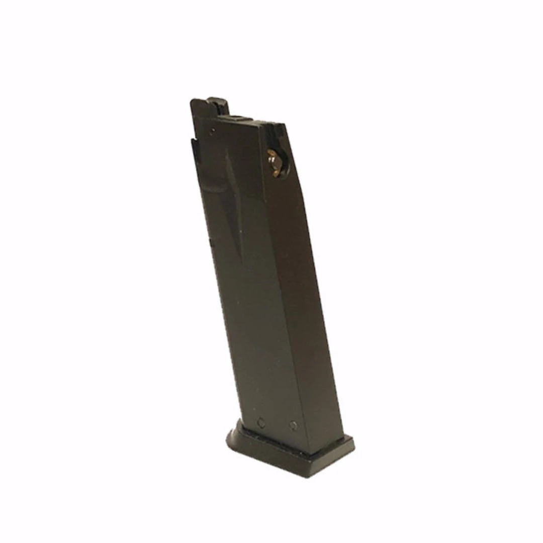 The Sig Sauer 23rd ProForce P229 GBB spare airsoft magazine by Sig Sauer is made from a heavyweight metal alloy, giving a hefty feel to the Sig P229 airsoft pistol. This green gas Sig Sauer magazine has a high-efficiency internal gas system providing excellent FPS output, and reinforced valves and seals for optimal gas retention. We recommend using Valken Green Gas with this gas pistol magazine.